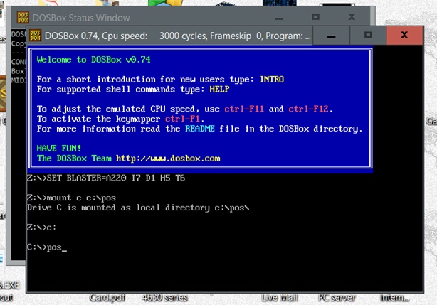 If your computer is running a 64 bit version of Windows XP, Vista, 7, 8, or 10 this POS program will not automatically run on your computer. However by installing DOSBox (another FREE program) you will not only be able to run my Cash Register program but also many other 16 and 32 bit programs that your computer currently cannot. Also for those folks that absolutely, positively require that my Cash Register program must run in FULL SCREEN (instead of a large window) DOSBox will also do that on 32 bit computers that have a problem with running my program full screen. First you must properly download the Cash Register program using these instructions upgrade.htm Since DOS software will not run on your computer you will have to run a 32 bit program on your computer that will run DOS software. This program is called DOSBox and can be obtained for free from here http://www.dosbox.com. You will find instructions there on how to download the program and start it up. I will wait here until you do so. Now that you have the Cash Register program on your computer and you are running DOSBox we can get started. First you must tell DOSBox where the Cash Register program is located. Assuming that the Cash Register program is located on a folder named C:\POS type this into the DOSBox window (Press [ENTER] after each command)